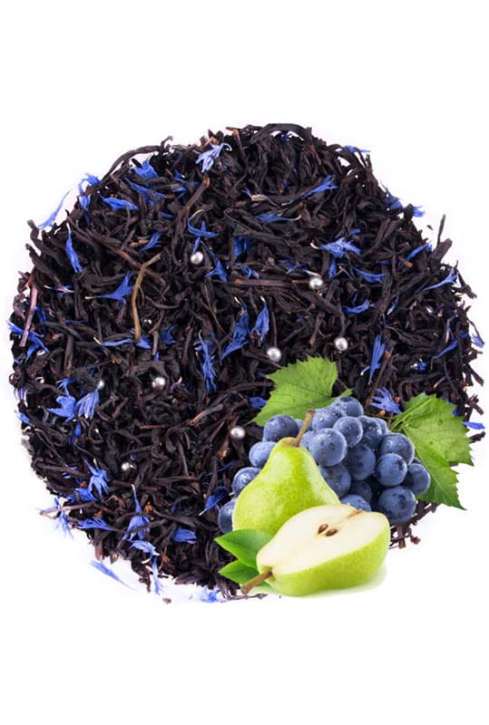 SKŁAD: herbata czarna, srebrne cukrowe perełki, olejek z bergamoty, płatki bławatka.